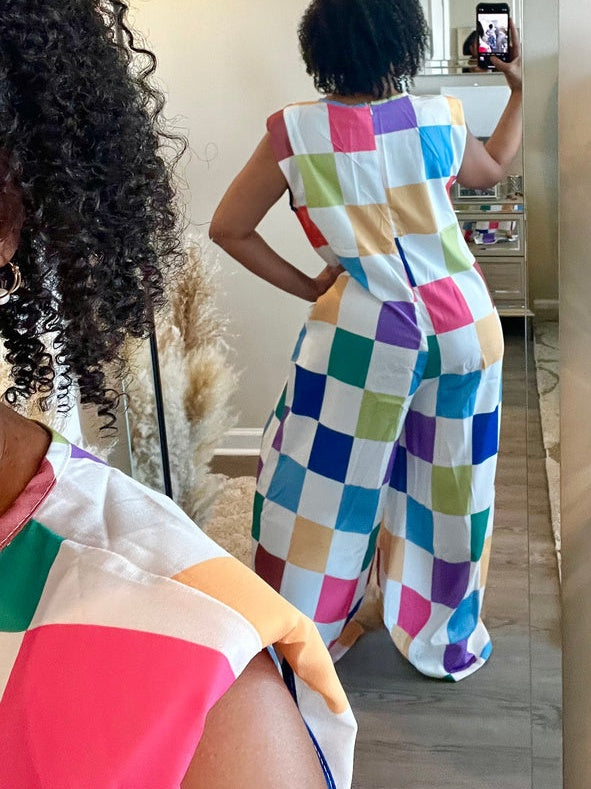 What a colorful jumpsuit! It gives all the feels and passes the vibe check, with is oversized fit, pockets and shoulder pads. Looks fab with or without a belt. Model is wearing a large, for a looser fit. 34G-H Bust/33" Waist/46" Hips. 5'5" Tall. Inseam from natural crotch is 34"-36". Belt not included.