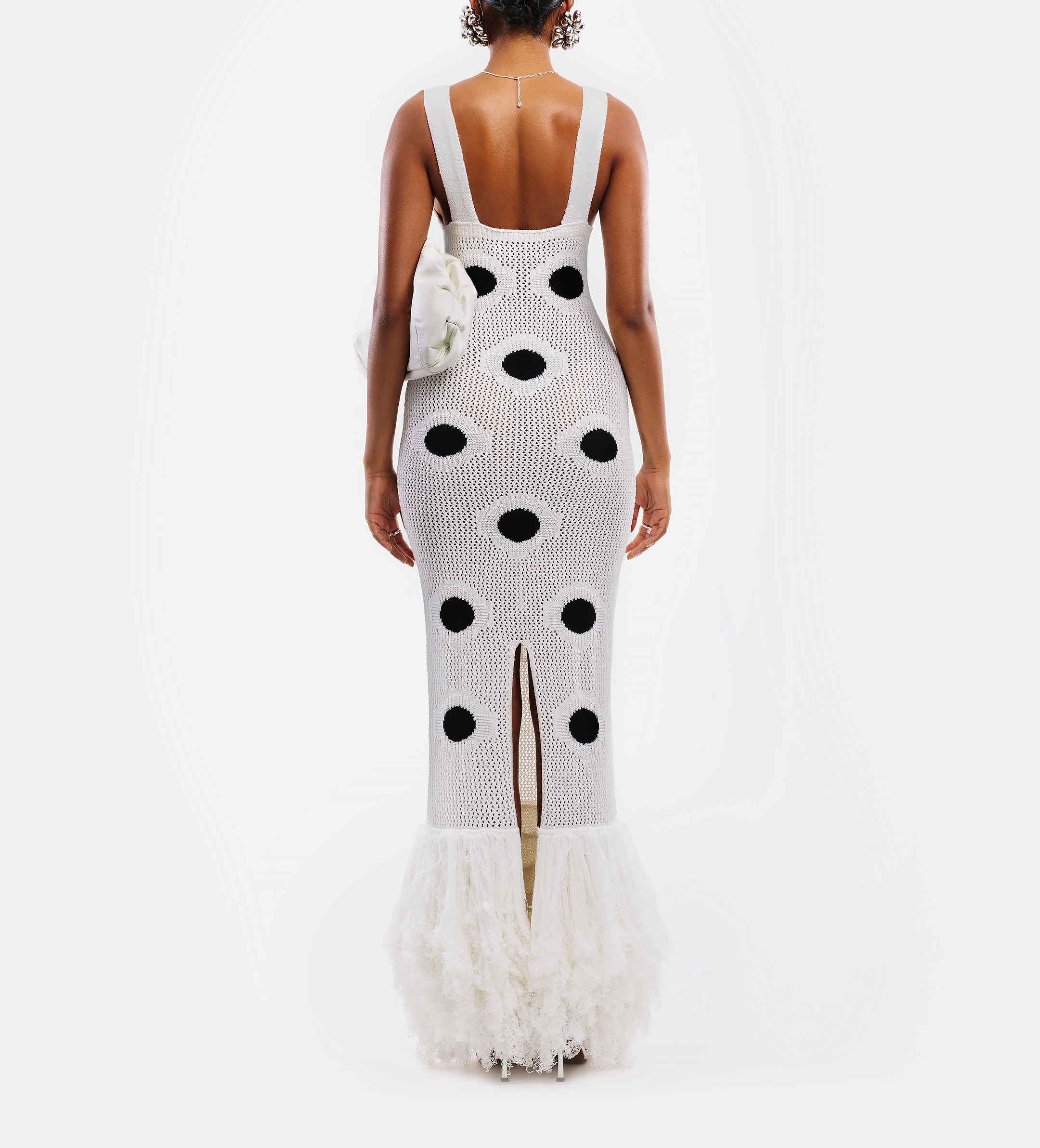 - Allover polka-dot pattern