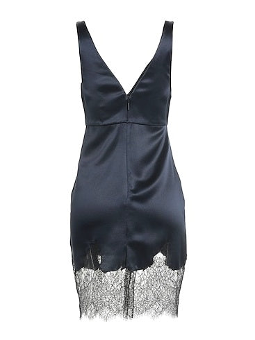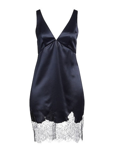 slip dress, satin, lace trims, two-tone, deep neckline, sleeveless, partially lined, zipper fastening, without pockets, dry clean, do not bleach, do not tumble dry