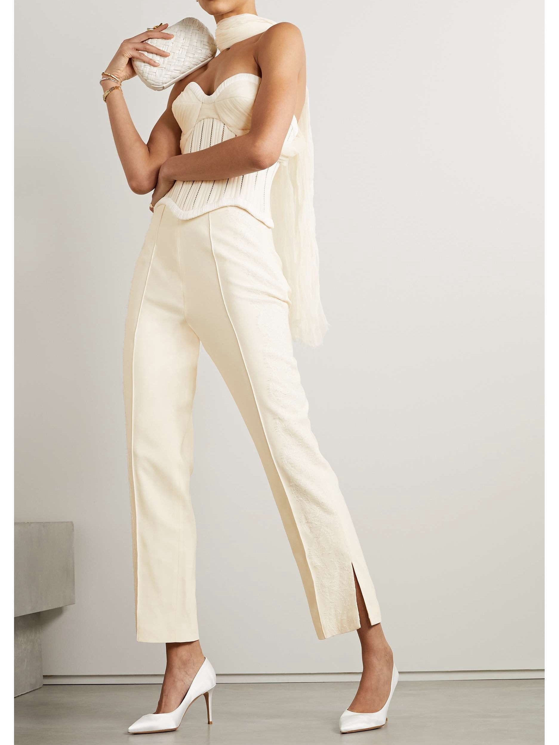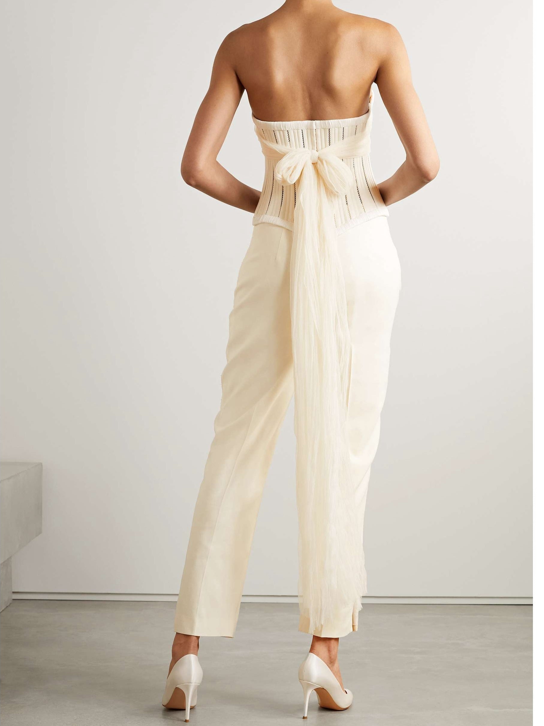 - Ivory cotton-blend twill, tulle and plissé-satin
